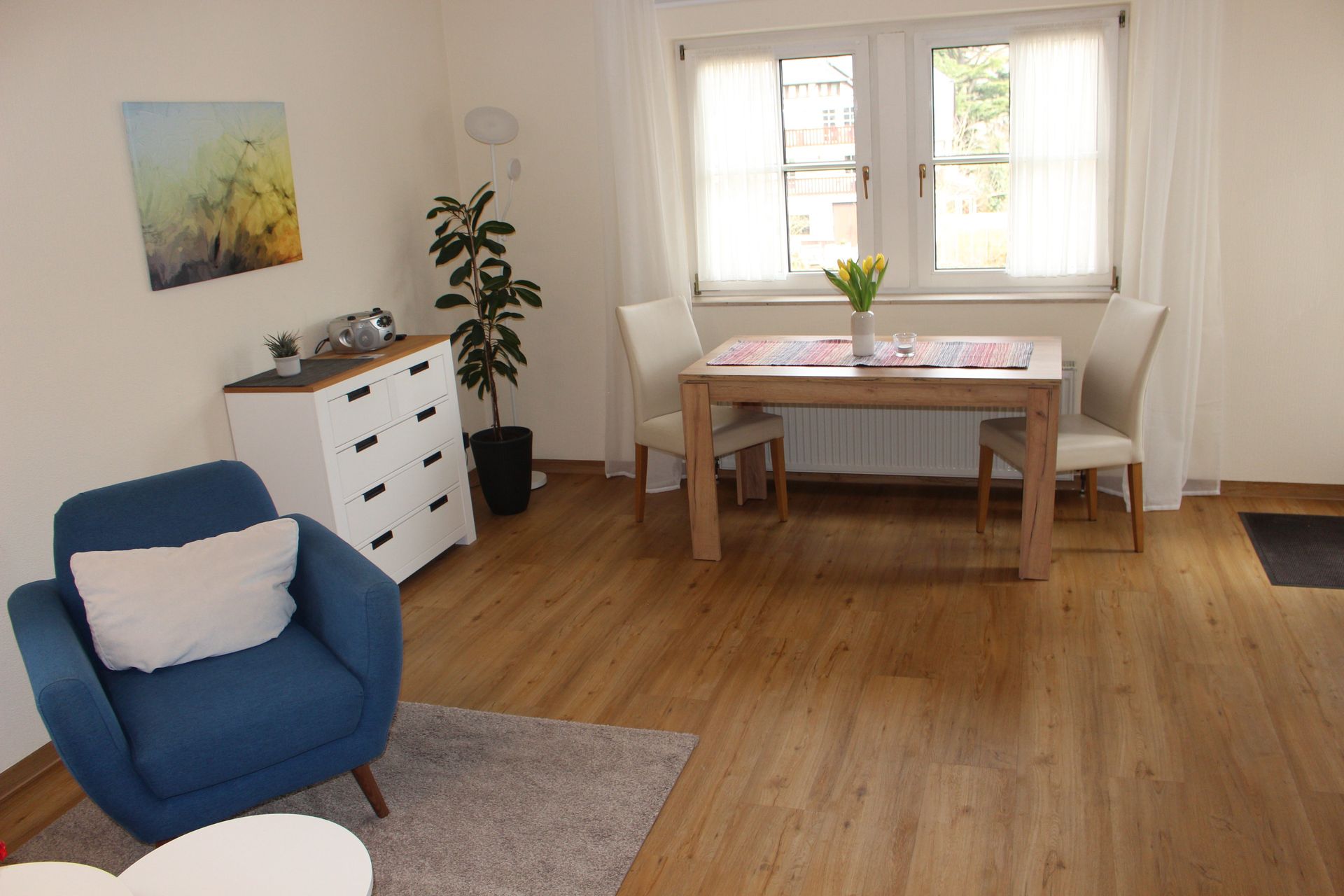 Die Ferienwohnung `Süßenberg` (46 qm) bietet Platz für 2 Personen und verfügt über ein Wohnzimmer mit Essecke,